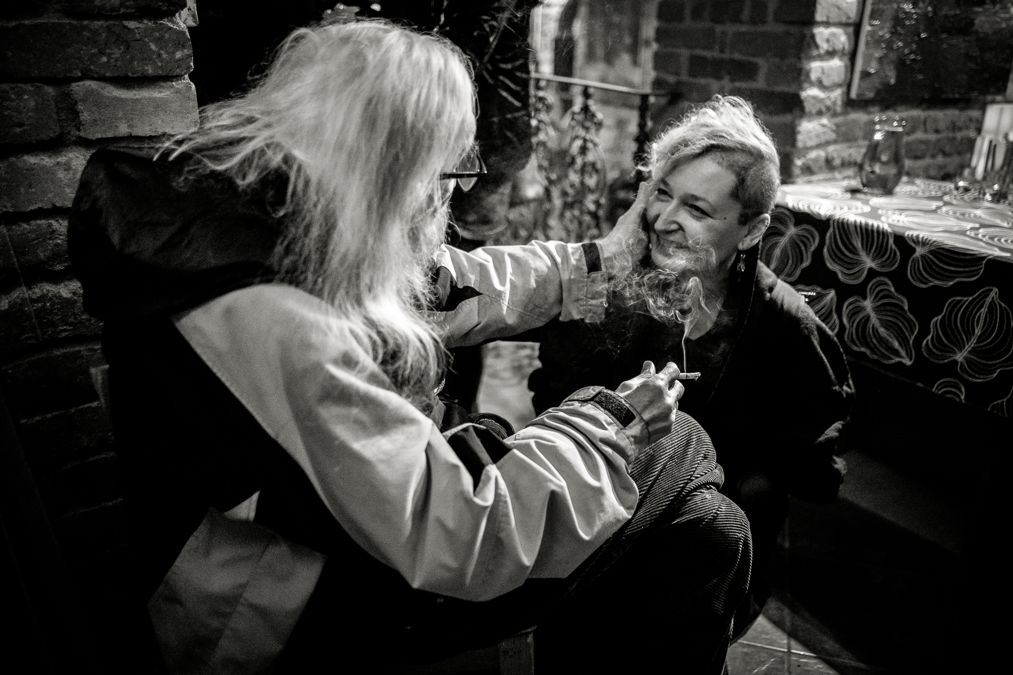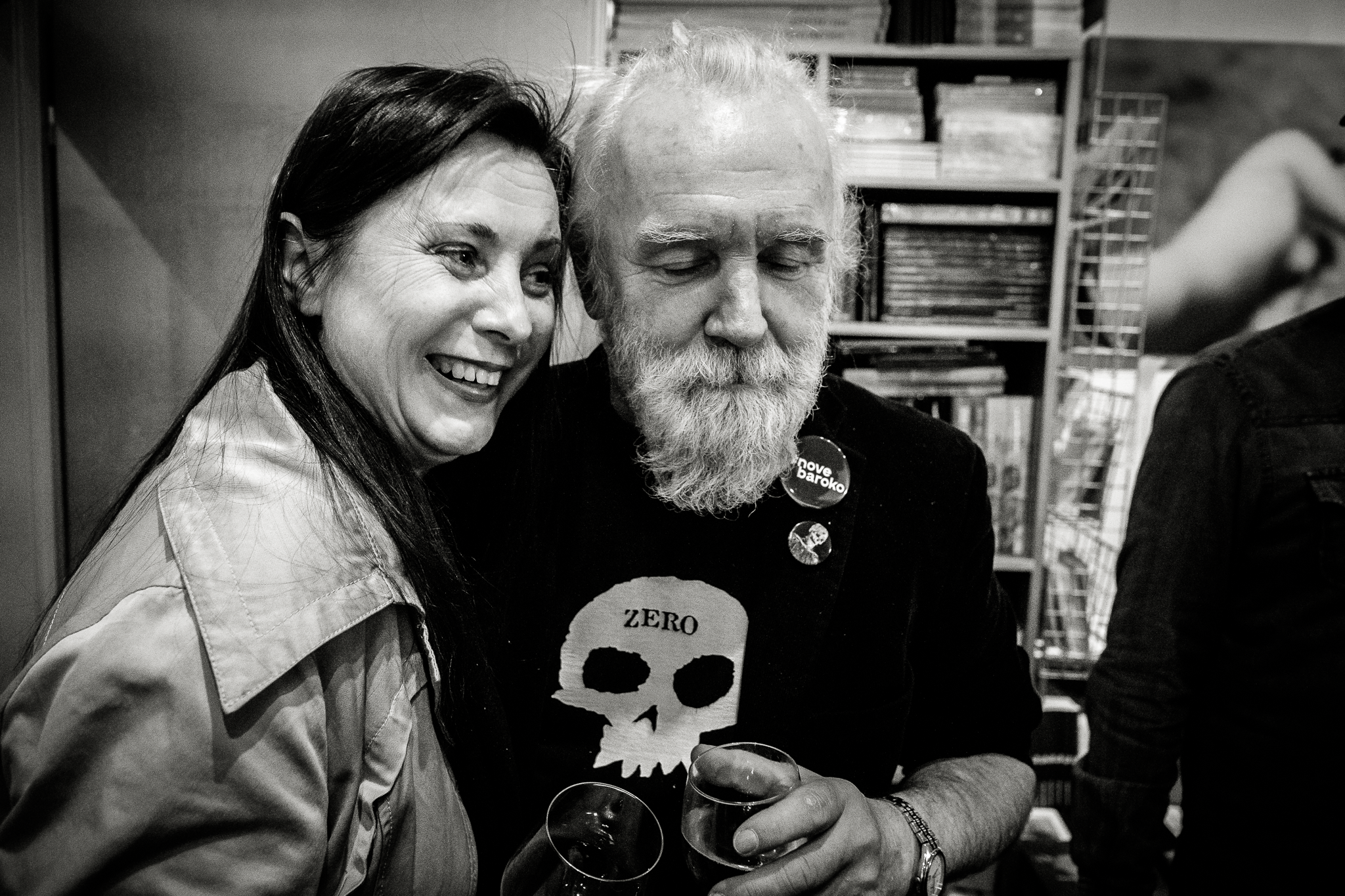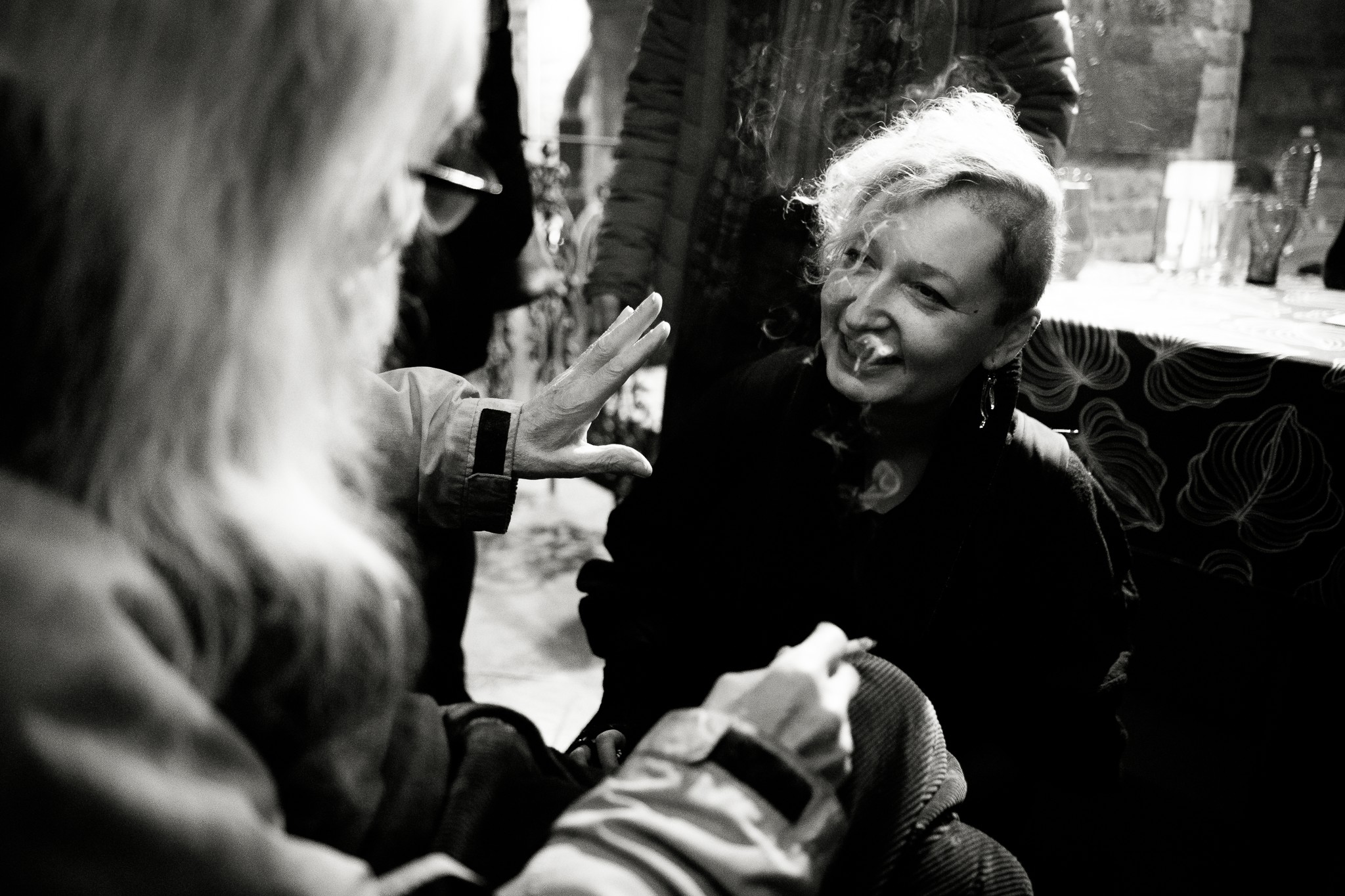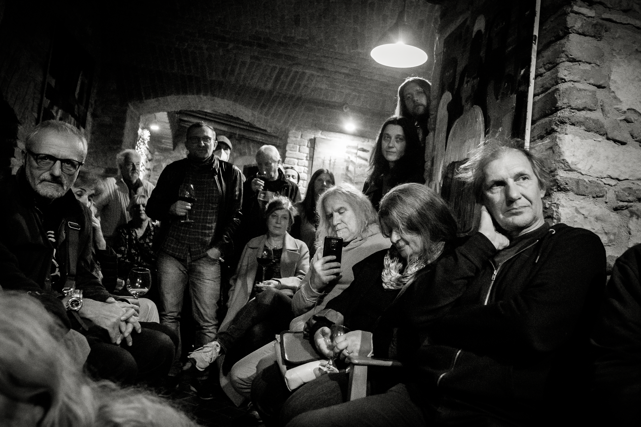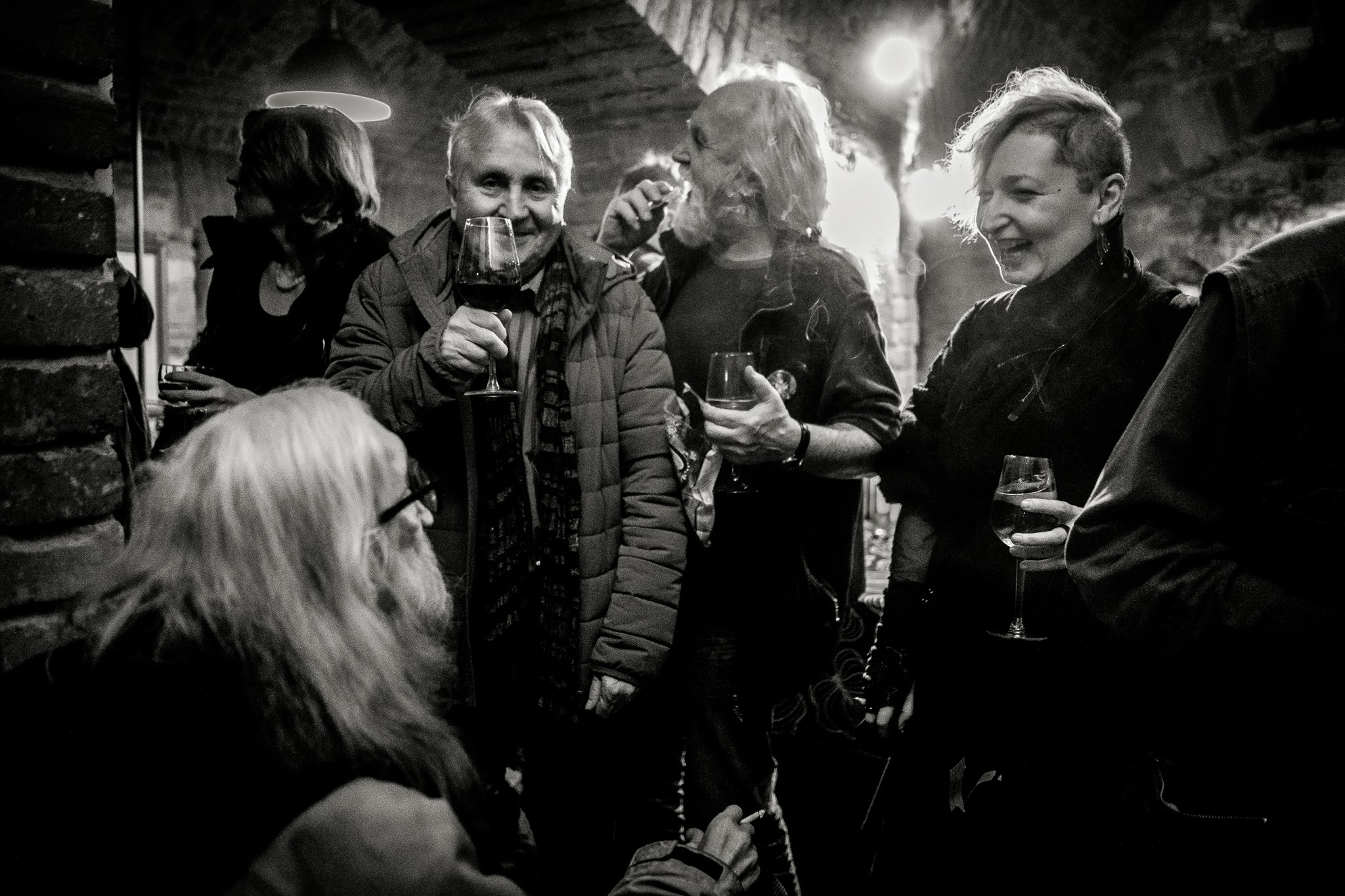 I like to photograph events related to the Czech cultural underground and political dissent. On the one hand, these groups largely overlap, which I consider a specific phenomenon on a global scale, and on the other hand, it usually turns into a great party. These are actually photos from two events: the exhibition opening and the closing party. The guest of the first of them was, among others, the bassist of the legendary Plastic People, Eva Turnova. The guest of second was saxophonist of the same band, Vrata Brabenec.