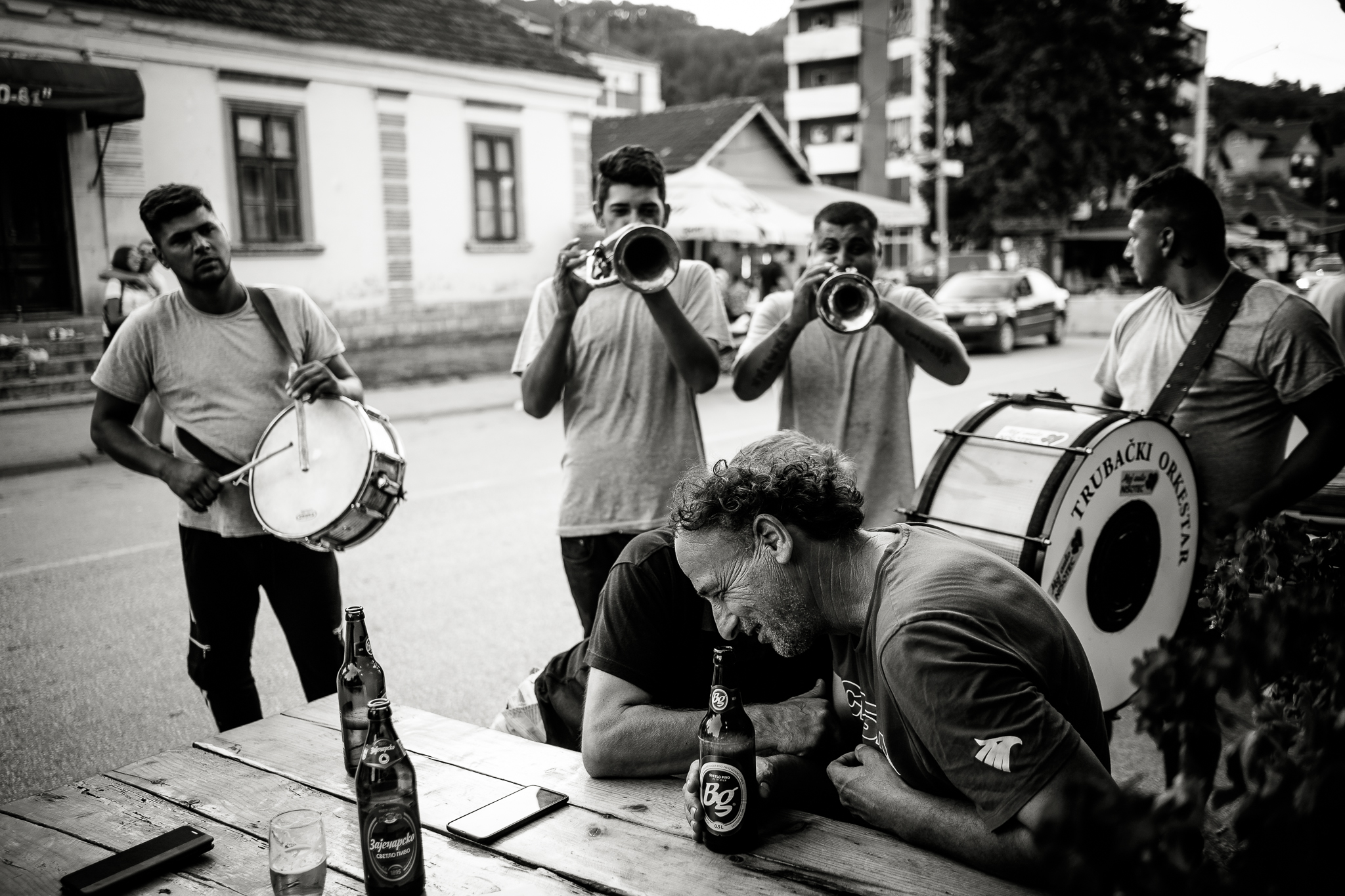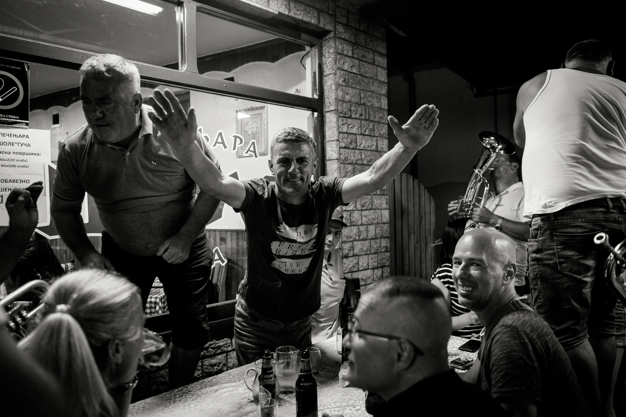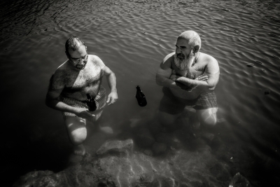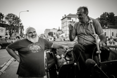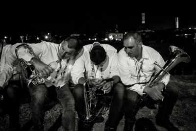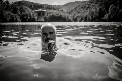 A few years ago, my friend Radovan decided to search for his Serbian half of his identity, left the quiet intellectual niveau of Prague and bought a dilapidated house in a secluded spot in the Serbian mountains. You can easily recognize him in the photos, he looks more and more like an Orthodox pop. Coincidentally, his solitude is in the hills above the town of Guča. It makes a visit to the festival a little more authentic, because apart from listening to the trumpets blowing and eating grilled meat and cabbage, it's not without visits to all his relatives and local friends. That means lots of homemade fruit spirits, more grilled meat and more booze. We spend the hot part of the day cooling our hangovers in the nearby reservoir, then more booze and a concert in the evening. And so it goes on and on for days.