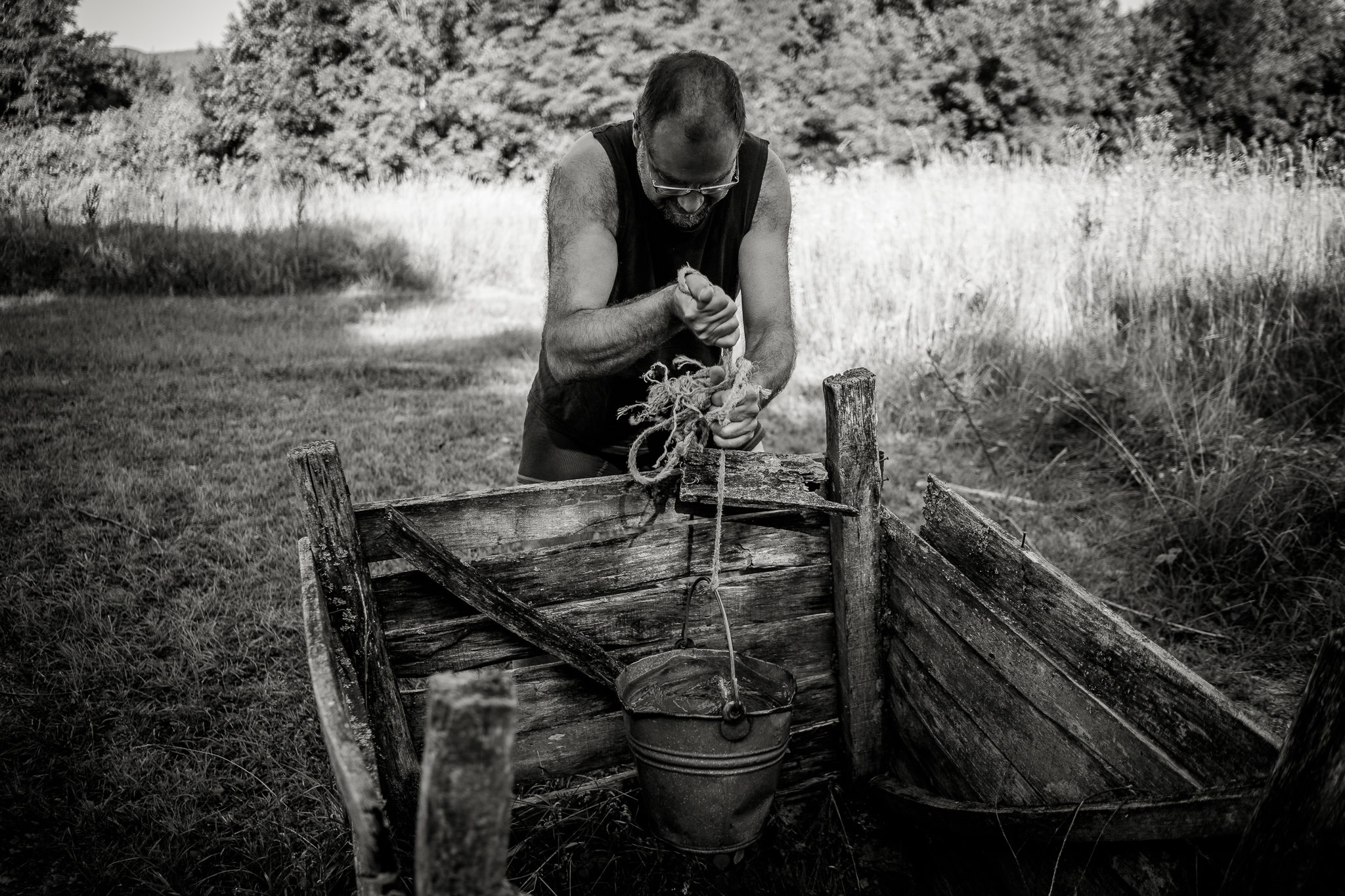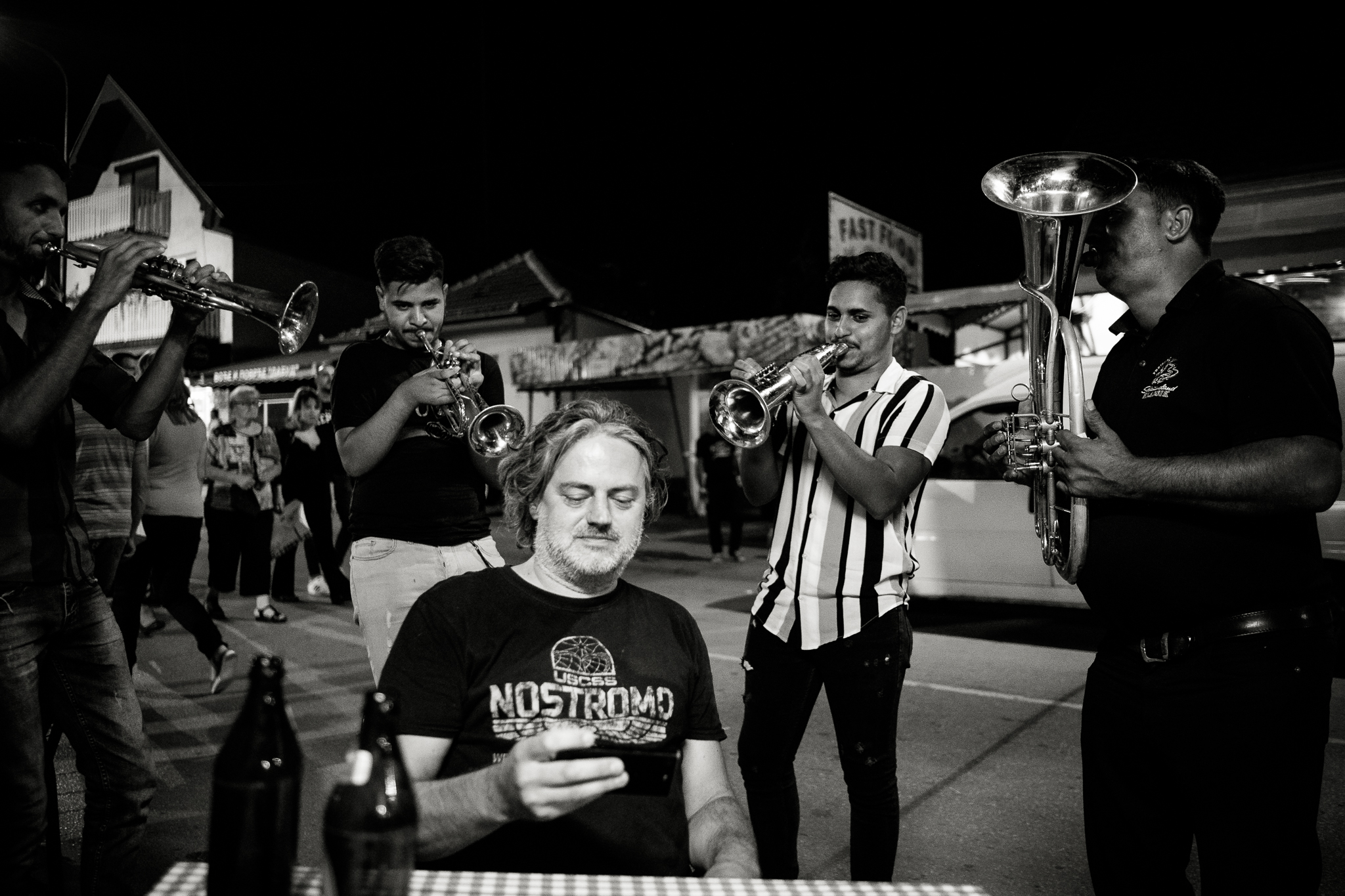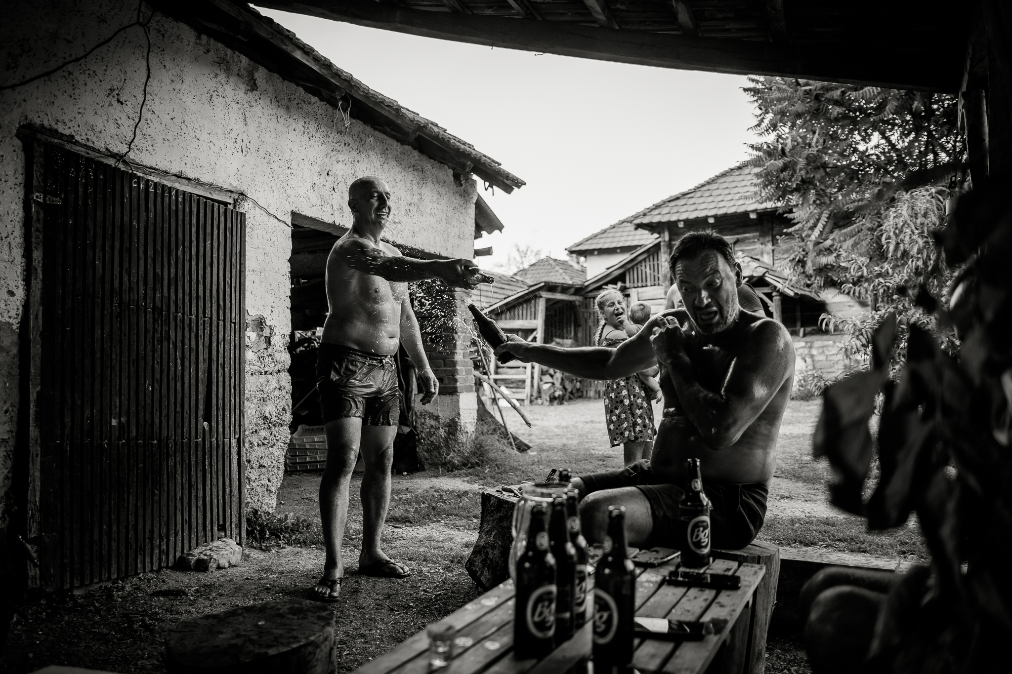 A few years ago, my friend Radovan decided to search for his Serbian half of his identity, left the quiet intellectual niveau of Prague and bought a dilapidated house in a secluded spot in the Serbian mountains. You can easily recognize him in the photos, he looks more and more like an Orthodox pop. Coincidentally, his solitude is in the hills above the town of Guča. It makes a visit to the festival a little more authentic, because apart from listening to the trumpets blowing and eating grilled meat and cabbage, it's not without visits to all his relatives and local friends. That means lots of homemade fruit spirits, more grilled meat and more booze. We spend the hot part of the day cooling our hangovers in the nearby reservoir, then more booze and a concert in the evening. And so it goes on and on for days.